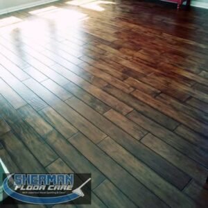 Sherman Floor Care’s residential wood floor cleaning services are designed to bring back the natural warmth and beauty of your hardwood floors while protecting them from long-term damage. Everyday foot traffic, pet hair, spills, and dust can accumulate on wood floors, dulling their shine and causing scratches or discoloration over time. Our expert team uses specialized equipment and wood-friendly cleaning solutions to remove dirt and grime that regular mopping leaves behind, restoring the elegance and vibrancy of your floors without damaging the finish.